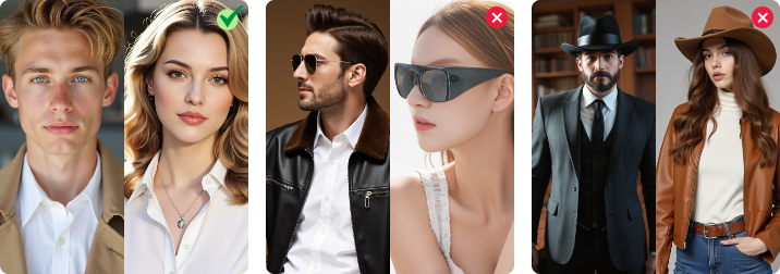 Die Bilder sollten klar sein mit frontalen Motiven und gut proportionierten Personen.