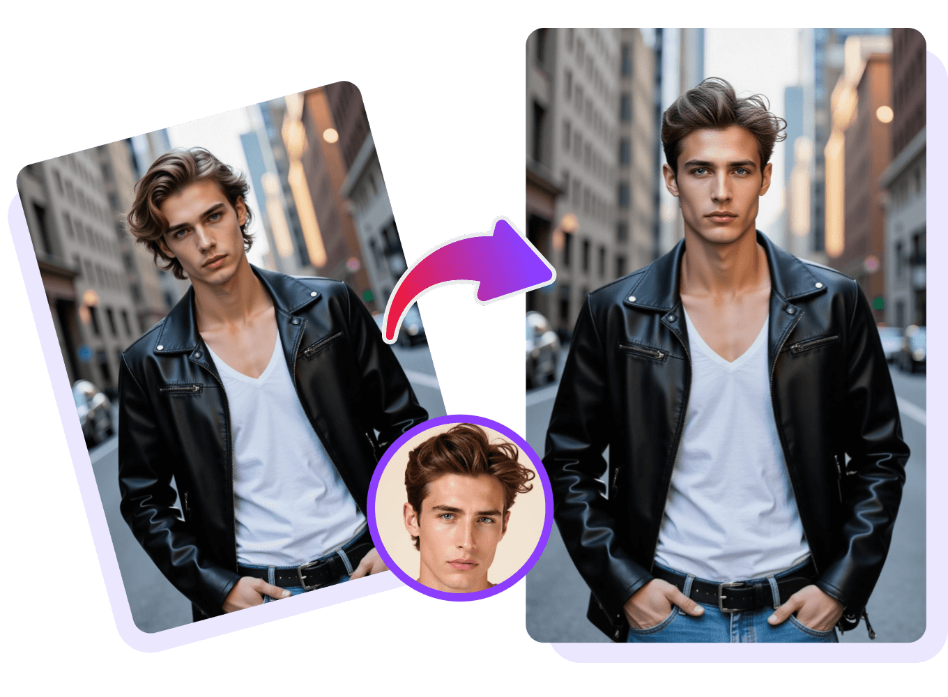 Das Head Swap AI tauscht nicht nur Gesichter, sondern ersetzt auch den gesamten Kopf. Einfach und kostenlos!